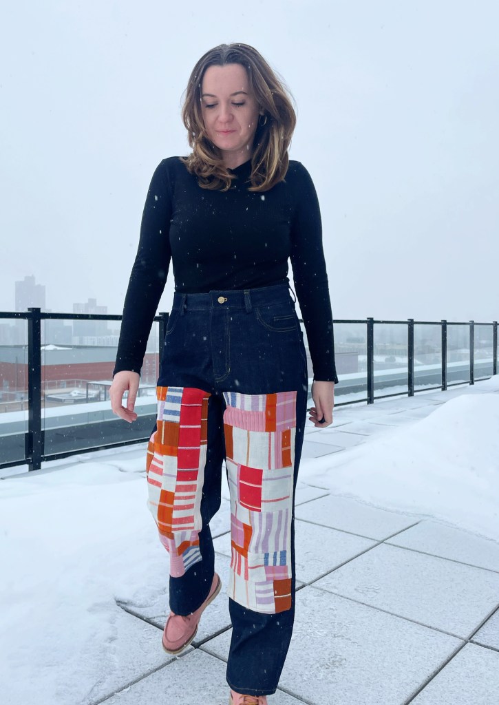 I took time off of work at the end of the year to have a staycation/sewcation, and I planned to spend some time making new jeans. I picked out the Helen’s Closet Patterns Brook Jeans and 11oz non-stretch indigo denim from Blackbird Fabrics (now sold out). I was inspired to add patchwork fronts by @natalie_ebaugh on Instagram and the ready-to-wear brand Carleen. For those, I used scrap fabric from a quilt top project I made last summer – all from the Ruby Star Society Warp and Weft collection.